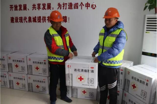 12月13日上午,濟南市政公用資產管理運營有限公司聯合山東省紅十字會、濟南市紅十字會、石家莊以嶺藥業集團,在工業北路快速路項目部為奮戰在各重點在建工程一線的農民工捐贈了價值約11萬元的治療流感藥品“蓮花清瘟膠囊”。