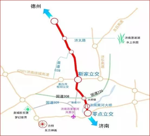 沿線居民和企業通過靳家互通立交往東直達遙墻國際機場、連接濟樂和濟東高速,往西連接青銀直通京福、濟聊高速,極大地方便了黃河北地區市民出行。