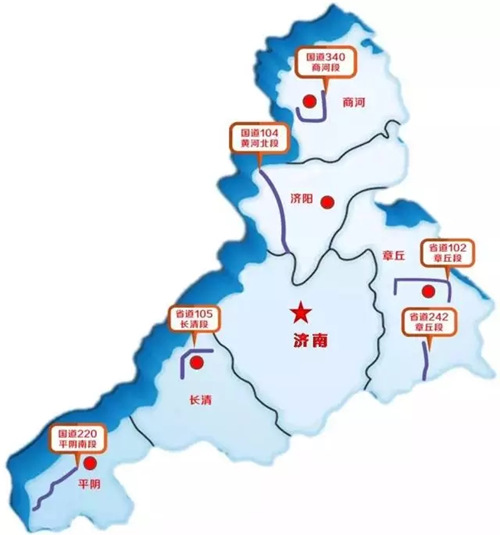 經濟發展交通需先行,綜合交通需頂層設計。為積極落實“攜河北跨”發展戰略和“濟南都市圈”整體規劃要求,由濟南城市建設集團下屬濟南金衢公路勘察設計研究有限公司承擔設計、濟南金諾公路工程監理有限公司負責項目代建及濟南金曰公路工程有限公司、濟南金宇公路產業發展有限公司參建的104國道黃河北段改建工程、242省道章丘南段改建工程應勢而起,泉城北大門、章丘南大門全新開啟,城市發展空間再次拓展。