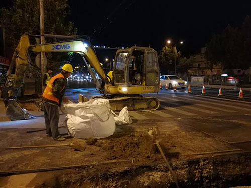 同時為確保原有管線安全,開挖過程全部采用人工作業(yè),渣土裝袋不落地的綠色施工方法,恢復(fù)通行前對原有管線再采取加固措施,確保管道安全和通行安全的萬無一失。