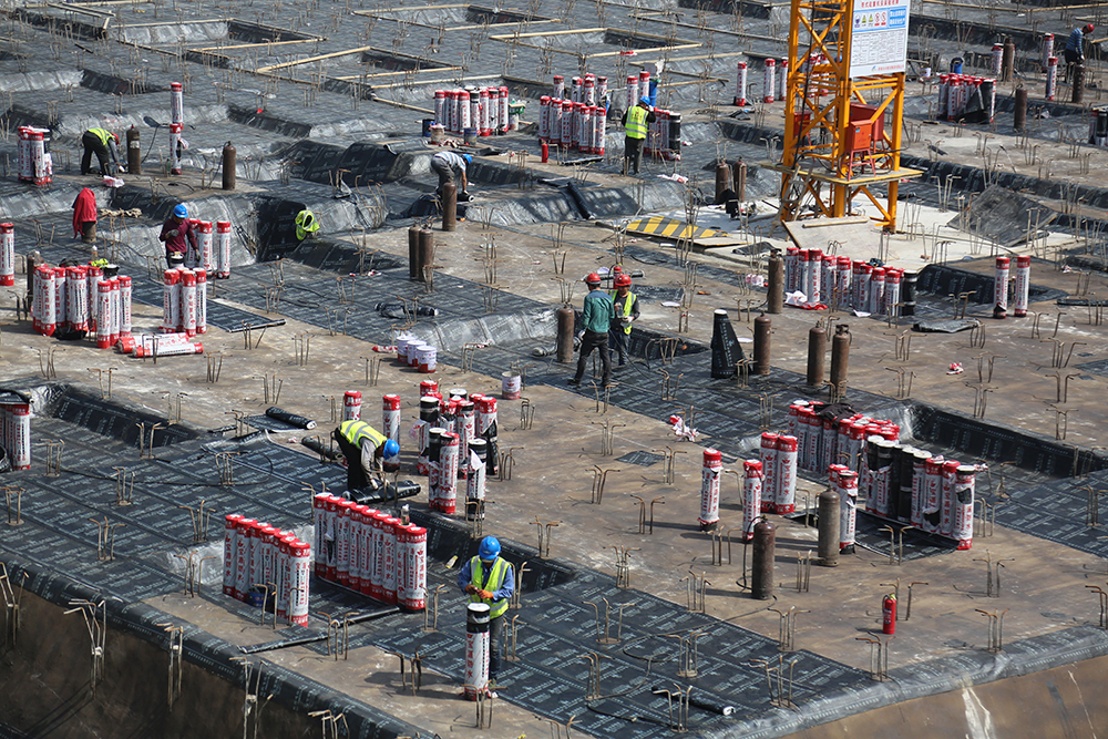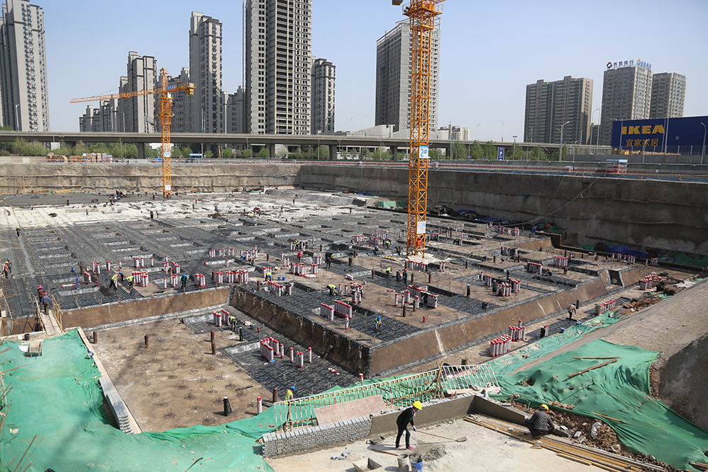 迪卡儂項目北鄰西部會展中心,東臨二環西路,南側緊鄰宜家項目,西側為大片居住辦公混合區。項目總建筑面積為3.2萬平方米,總計四層,其中地上兩層,地下兩層。自項目進場施工以來,已完成支護工程與抗浮錨桿的建設,正在進行基礎防水、筏板基礎施工及鋼筋的綁扎等工作。