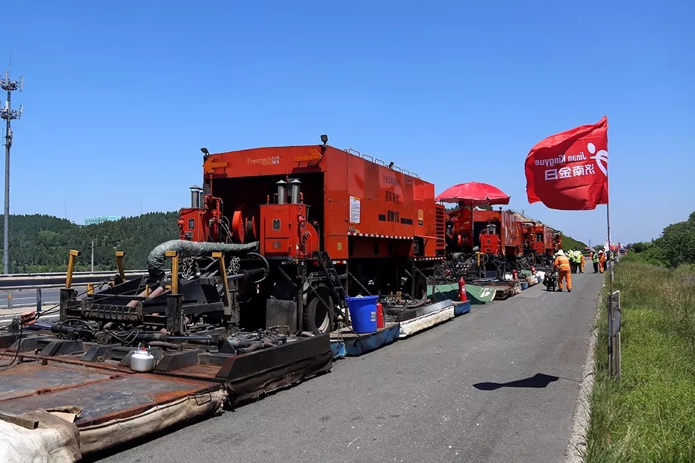由于工藝和設(shè)備的限制,原來高速公路養(yǎng)護(hù)施工時(shí)必須全封閉交通。而使用就地?zé)嵩偕夹g(shù)施工時(shí),各設(shè)備前后相連、連續(xù)動(dòng)態(tài)施工,只占用一個(gè)車道,不用封閉其他車道交通,大大提高了施工期間高速公路的通行能力。