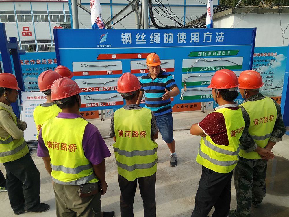 此外,為提高安全意識,黃河路橋還特別在項目現場打造了一處安全教育培訓體驗館,通過洞口墜落、安全帽撞擊、現場急救、墻體傾倒等多個體驗項目,基本覆蓋現場常見的大部分安全隱患。通過對各項危險源和模擬事故場景的切身體驗,讓施工人員增強自我保護意識,接受較為全面的安全知識培訓,學習并掌握正確的安全防護用品使用方法和有效的自救方法,避免事故發生。