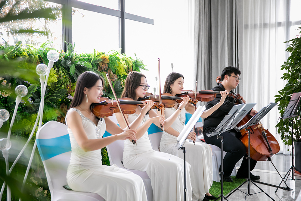以天鵝湖為創意源點的開場視頻,傳達了春風海岸對美好生活想象與期待。項目負責人介紹了春風海岸的小鎮規劃,描繪著專屬于海岸小鎮的美好生活。活動現場還為來賓們專門定制了小提琴雅樂之會,在松林海洋的環抱之中,感受濱海小鎮愜意時光。