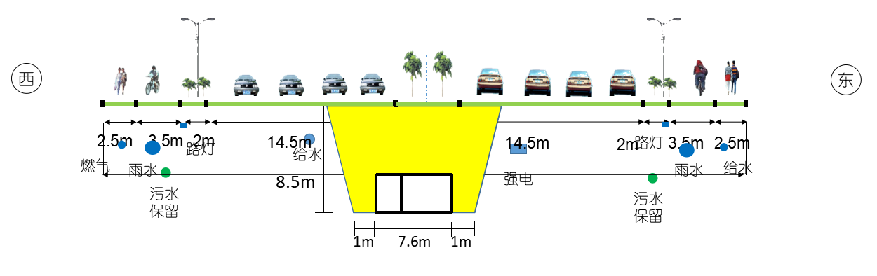竣工后的鳳岐路地上擁有雙向八車(chē)道機(jī)動(dòng)車(chē)道以及非機(jī)動(dòng)車(chē)道和人行道,地下?lián)碛薪∪木C合管線,通行能力和通行質(zhì)量得到質(zhì)的提升。管線施工以綜合管廊為主線,兩側(cè)管線及慢行一體同步施工。