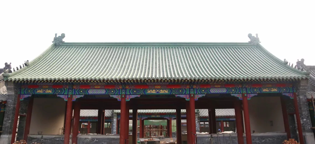 截至目前,老濟南街項目已全面進入仿古外裝飾施工階段,其中木結構安裝完成約95%;外墻磚砌筑完成約90%;石作安裝完成約80%;屋面掛瓦完成約85%;油漆彩繪完成約65%。同時,項目的綠化、水系、鋪裝等景觀建設、水電暖通等專項施工同步開展。