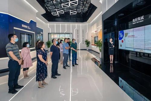 在綠地城市展廳,黨員們通過參觀濟南新舊動能轉換先行區展廳,觀看先行區總體規劃多媒體視頻、國博城項目多媒體視頻,感受先行區的快速發展。