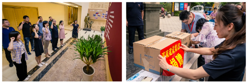 在濱湖社區宗旨教育展廳,全體黨員和積極分子在審計與監事會黨支部書記祁詠梅的帶領下重溫了入黨誓詞。集團黨委委員、總會計師范天云帶領黨員們為社區捐贈了礦泉水、花露水、洗手液等防暑物資。濟北街道、濱湖社區及集團“四進”工作組有關同志陪同參加了此次活動。