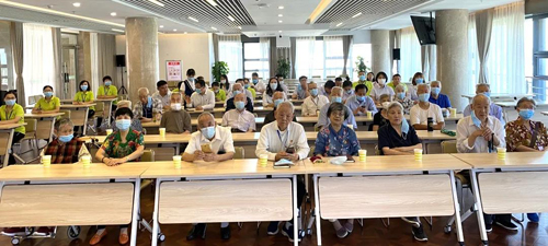 在金齡健康·山東濟南養老服務中心的護理院內也開展了一場別開生面的慶七一活動。護理院的全體長者與護理員們共同觀看了紅色電影《建黨偉業》,通過影片不僅重溫了中國共產黨建黨的那段崢嶸歲月,還感受到了老一輩革命家在風雨飄搖的年代里為國家赴湯蹈火的革命情懷,增強了對中國共產黨光輝歷程的了解,激發了學習黨史的熱情。觀影會結束后,護理院的長者們利用手勢舞、京劇表演、作詩等方式來表達對中國共產黨建黨99周年的美好祝愿。