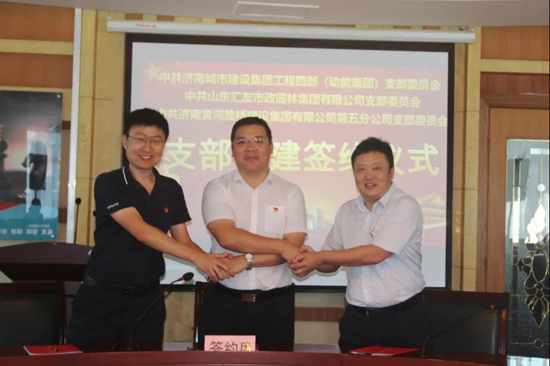 為進一步增強基層黨建活力,充分發揮基層黨建的核心引領作用,促進單位間的工作聯動與業務融合,9月17日,集團工程四部(動能集團)黨支部、城建集團園林公司黨支部、濟南黃河路橋五分公司黨支部結對共建簽約儀式。