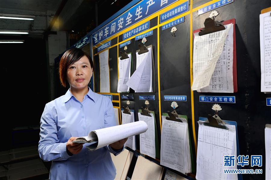 首批農(nóng)民工全國(guó)人大代表之一胡小燕在曾經(jīng)工作過的陶瓷廠檢查職工權(quán)益保護(hù)工作(2013年11月5日攝)。新華社記者劉大偉攝