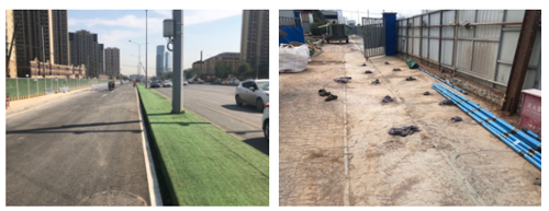 為避免施工對現狀交通及周邊居民生活產生過大影響,項目部通過認真研究,在早晚高峰時期不進行道路上的施工項目,同時在22時至次日6時之間不進行大型機械的地面作業,避免噪聲影響居民休息。“通行道路鋪設鋼板對溝槽進行覆蓋,改進原工藝,先銑刨路面,將鋼板降至與瀝青齊平,保證市民行車舒適度,降低噪音,隧道斜井全部采用防塵防噪隔離棚全部棚蓋,將對周邊居民的影響降到最低”,城建集團一分公司項目施工負責人吳建亮說道。