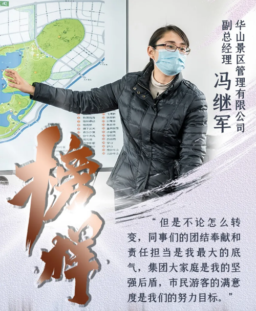 負責華山景區公司工作之前,馮繼軍長期在負責片區開發建設的華建公司任副經理,全面參與了華山片區的開發建設過程。近兩年,華山歷史文化濕地公園進入加速建設階段,全體建設者奮戰無數個晝夜,讓這片土地日新月異、滄海桑田,“鵲華煙雨”山水勝境再現,創造了“華山速度”和“華山模式”。幾年間,華山景區的每一株花草樹木、每一寸亭臺樓閣,都傾注著馮繼軍和所有建設者們的心血,湖光山色映照著這群“園丁”們的初心和使命,鐫刻著他們的辛勤與智慧。