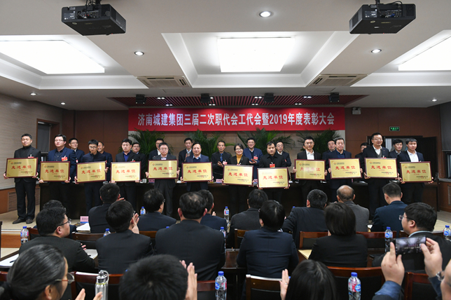 下午14時,大會在雄壯的國歌聲中開幕。在全場熱烈的掌聲中,湯繼沂董事長代表領導班子向大會作集團工作報告。報告從市場經營、工程建設、科技創新等6個方面全面總結回顧了2019年工作成績,客觀分析了當前形勢,安排部署了2020年重點工作。報告指出,2019年是城建集團發展史上具有重要里程碑意義的一年。集團全體干部職工解放思想、創新求變,擔當作為、真抓實干,全年完成產值207.9億元,榮獲全國工程建設誠信典型企業、中國工程建設企業社會信用評價AAA等級、山東省建筑業綜合實力30強(全省建筑業排第7位)、濟南市先進基層黨組織等榮譽稱號,混合所有制改革取得突破性進展。
