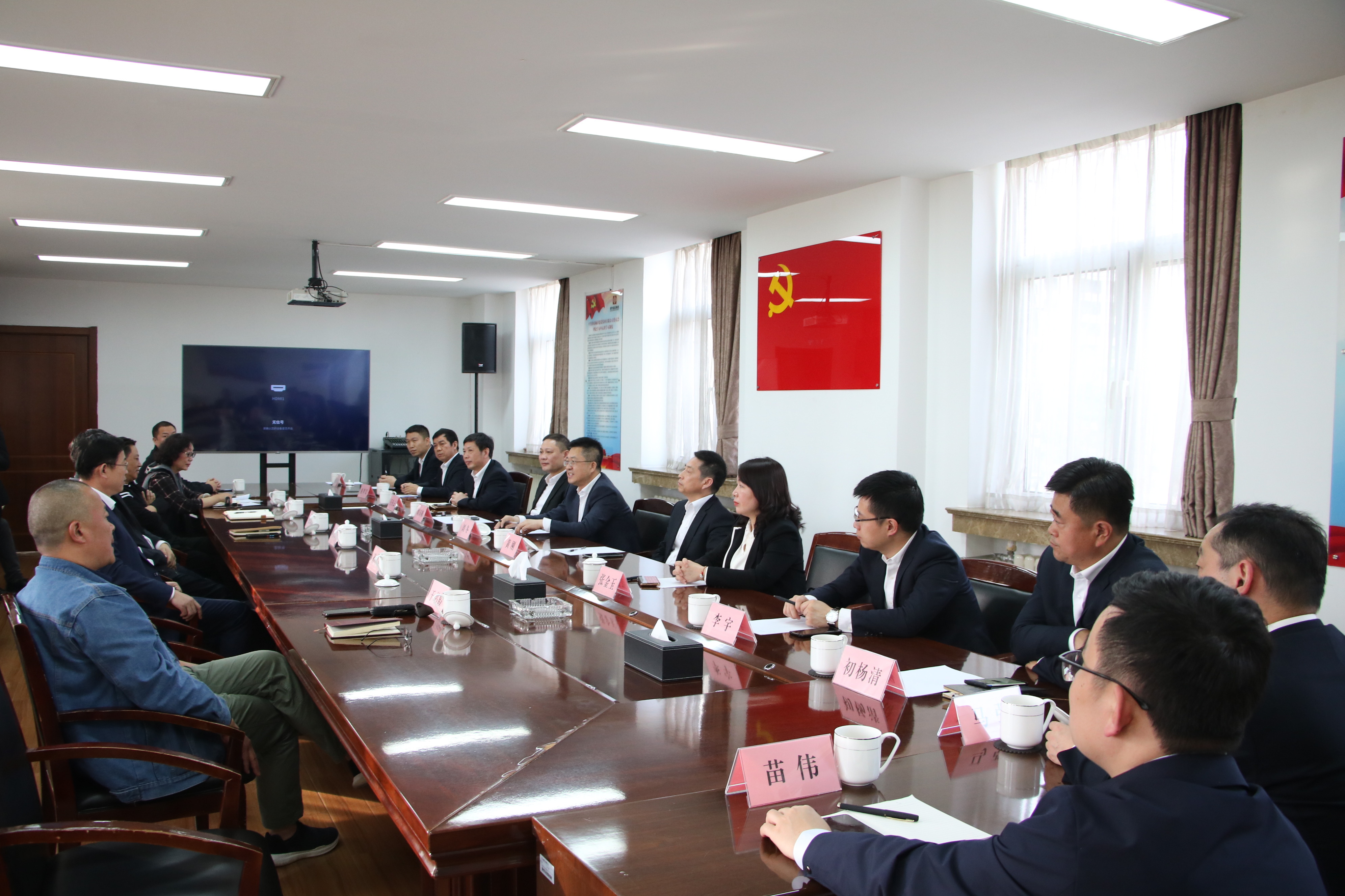 4月13日,中建五局黨委副書記、總經理劉冬一行到訪建設集團,雙方開展座談交流。中建五局黨委常委、董事、副總經理黃剛,山東公司黨委書記、董事長劉國棟,中建信和地產黨委書記、總經理張金玉,中建信和地產黨委委員、副總經理王慶云,建設集團黨委書記、董事長張海平,黨委副書記、總經理史海成,副總經理孫培梁及相關負責同志參加座談會。