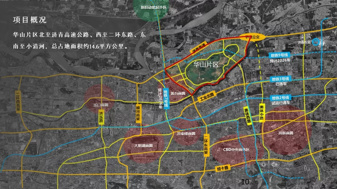 華山片區(qū)總占地面積約14.6平方公里,地處濟南市東北部,北鄰起步區(qū),與鵲山遙相呼應,區(qū)位優(yōu)越。片區(qū)規(guī)劃剩余可出讓用地約1666畝,擬采用整體策劃研究、分期實施的方式推進。
