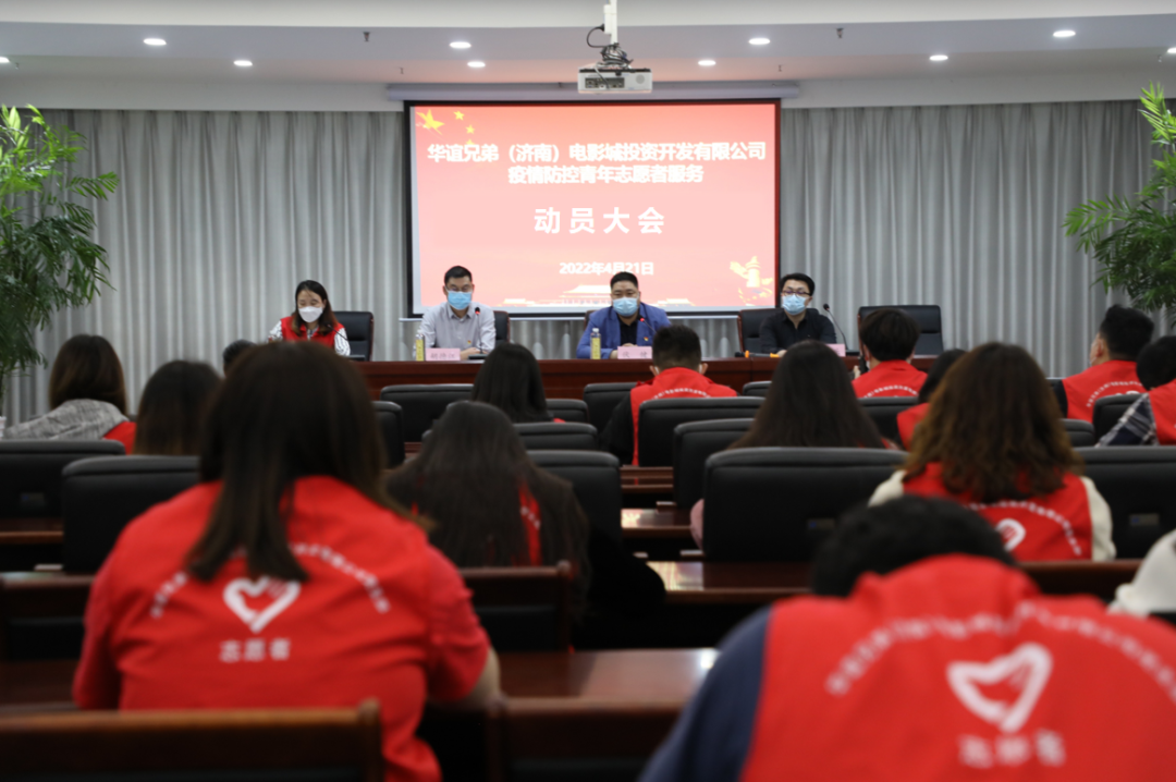 按照市委、市政府相關指示精神和濟南城市建設集團統一部署,4月21日,華誼兄弟(濟南)電影城投資開發有限公司召開疫情防控志愿服務動員大會,動員公司志愿者踴躍參與村(社區)人員落地、入戶排查和政策宣傳等疫情防控工作,筑牢群防群治防線。