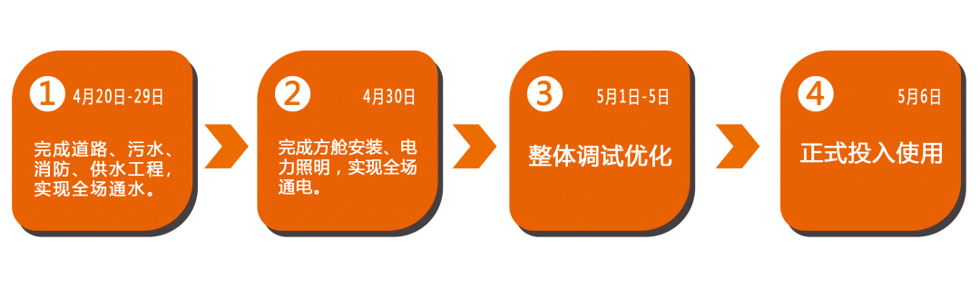 起跑即沖刺,開工即大干。八角驛站項目突擊隊在接到指令后,當晚組織機械、人員進場清表。第二天拿到設計圖紙后,2個小時內完成工程量計算,并運用BIM建模技術,迅速建立場地三維數字模型,實施裝配式快易施工方案。在保證施工質量的同時,精心策劃、精心準備、流水作業、無縫銜接,快速開啟拼搶決戰模式。