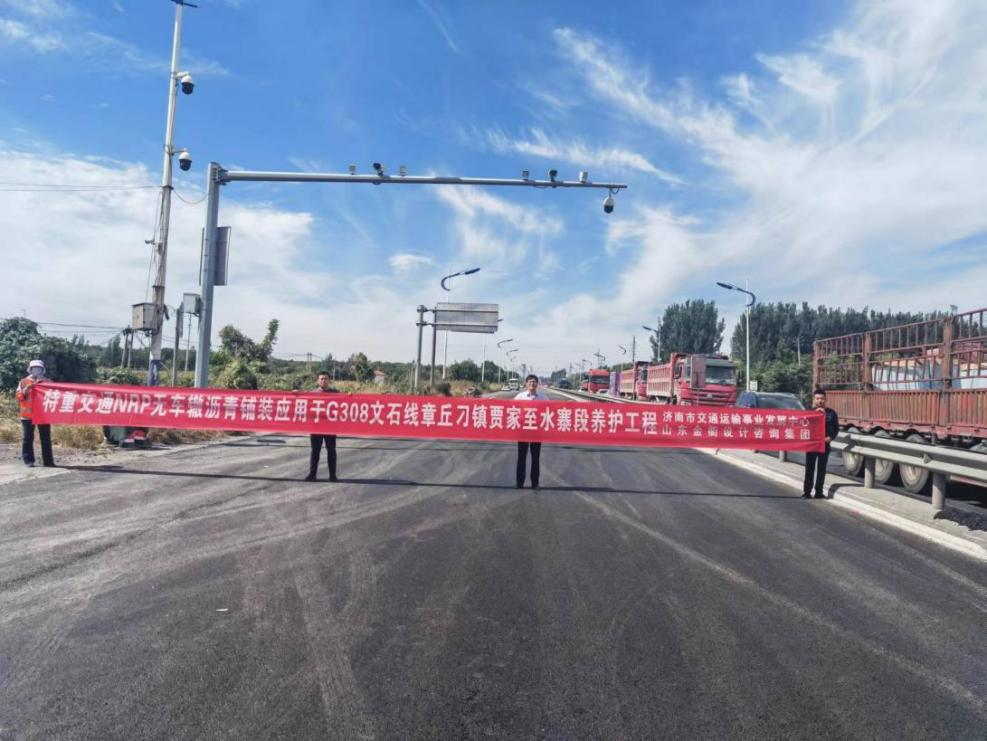 9月23至24日,由建設集團所屬金衢設計咨詢集團與國路高科(北京)工程技術研究院共同研發的“特重交通NRP無車轍瀝青路面技術”在G308文石線章丘刁鎮賈家至水寨段養護項目試驗應用,是該技術在濟南的首次應用。