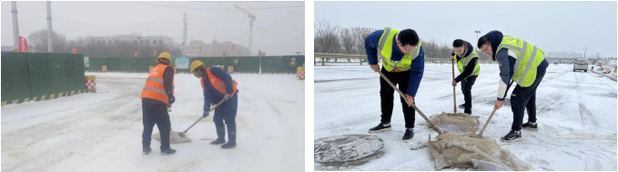 各項(xiàng)目在接到降雪預(yù)報(bào)后,按照要求提前做好各項(xiàng)清雪除冰準(zhǔn)備工作,并安排人員在崗值守,密切關(guān)注雪情路況,第一時(shí)間撒布融雪劑、鏟雪、除冰,機(jī)械作業(yè)與人工作業(yè)交替進(jìn)行,對重點(diǎn)路段進(jìn)行鏟、推、掃、堆一體化循環(huán)作業(yè),加快清理道路積雪,為來往行人車輛清理出安全整潔的通道,為市民群眾平安出行保駕護(hù)航。