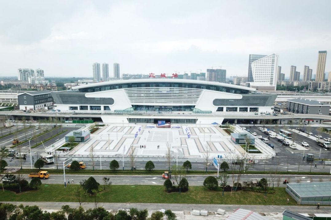 宣城火車站東西廣場一體化項目總建筑面積25998平方米,其中地上532平方米,地下25466平方米,除了普通綠化、地面道路外,宣城站還配備了地面公交車站、出租車站以及人行景觀廣場,目前成為宣城地標性建筑。