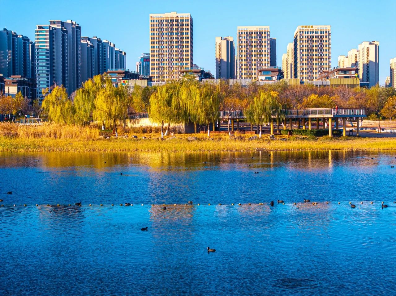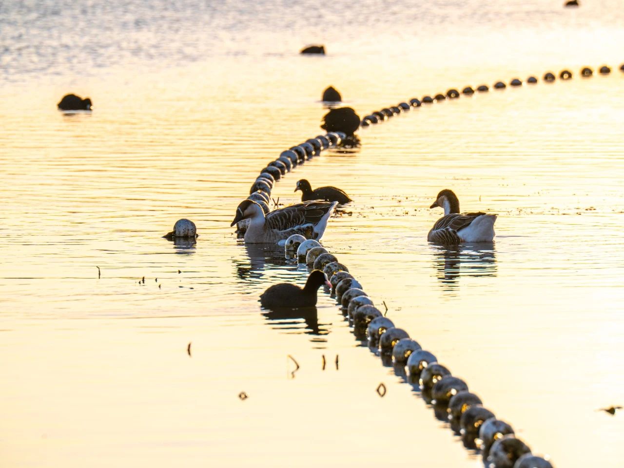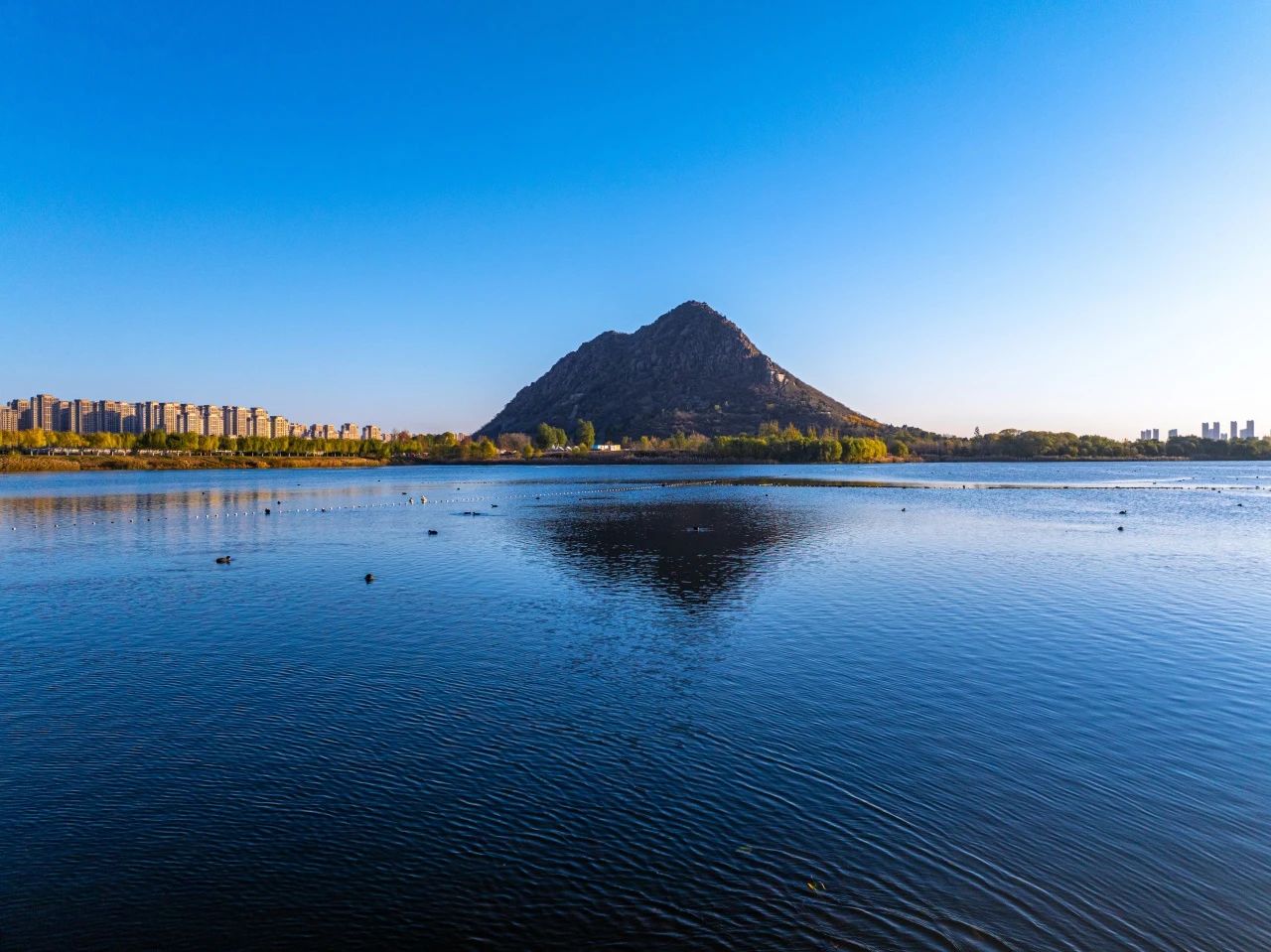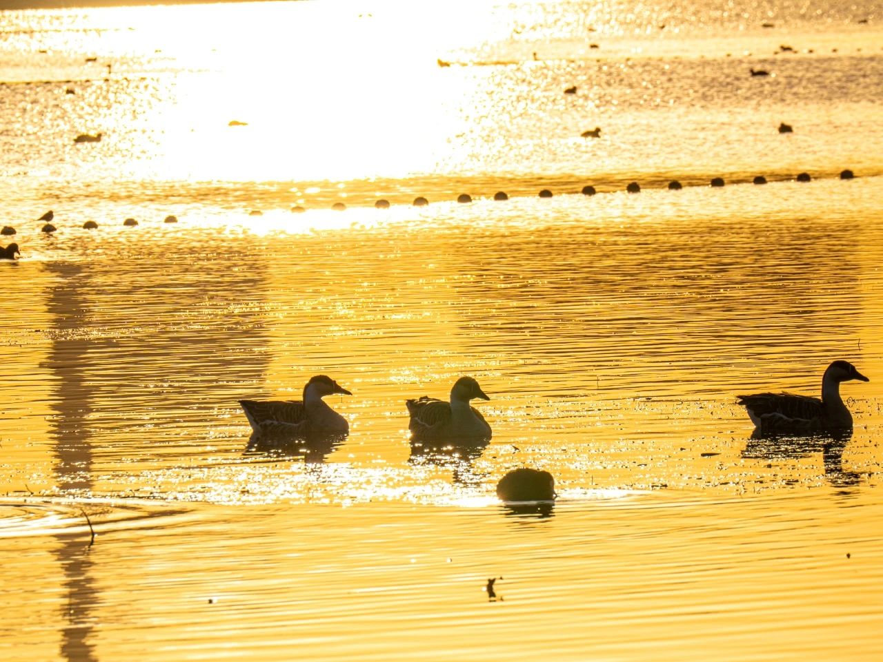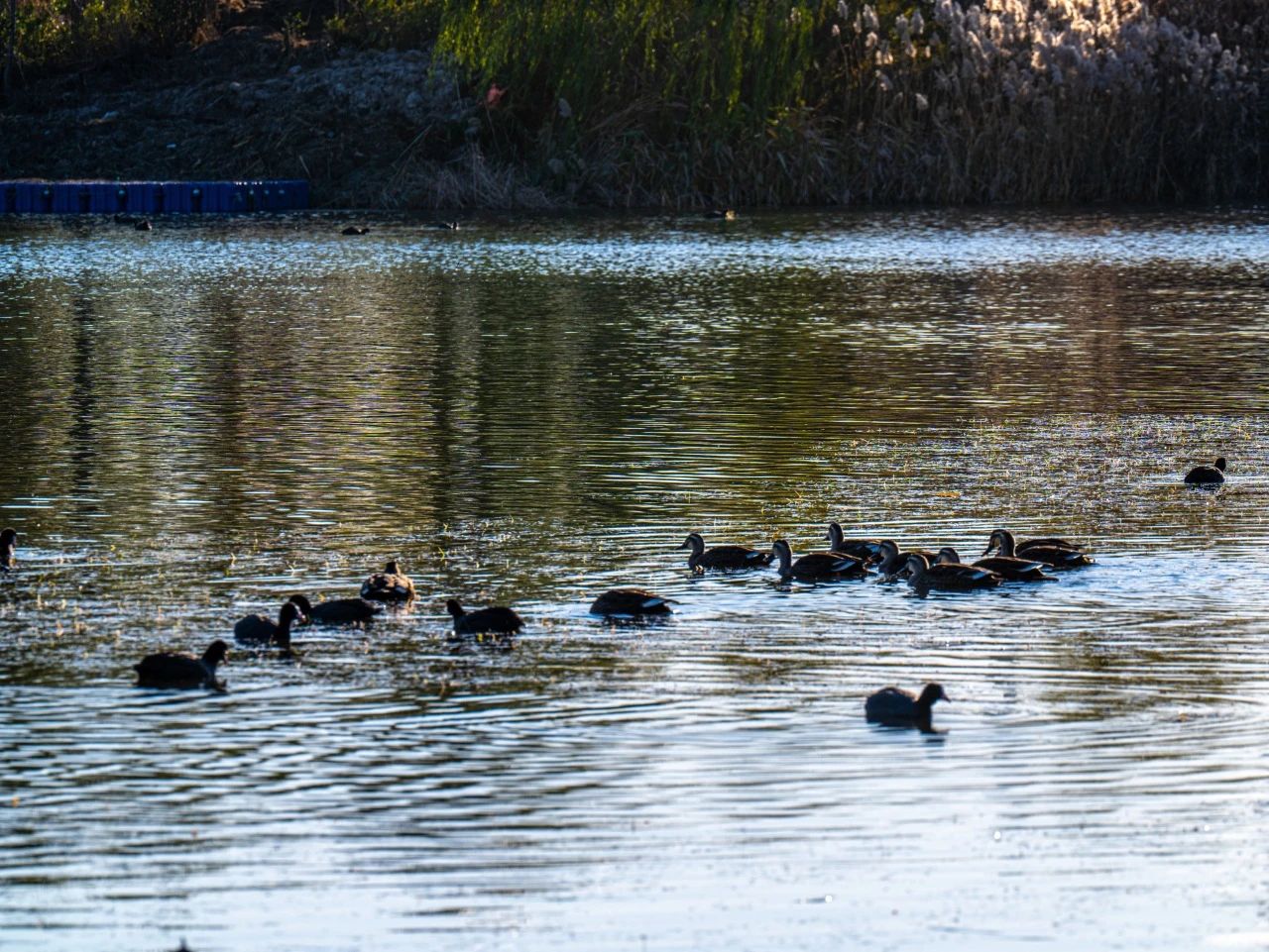 羽翼輕展映寒暉,群鳥嬉戲逐水歸。秋末冬初,上百只國家二級保護動物白骨頂雞如約來到濟南華山景區棲息,赴冬日的約定。