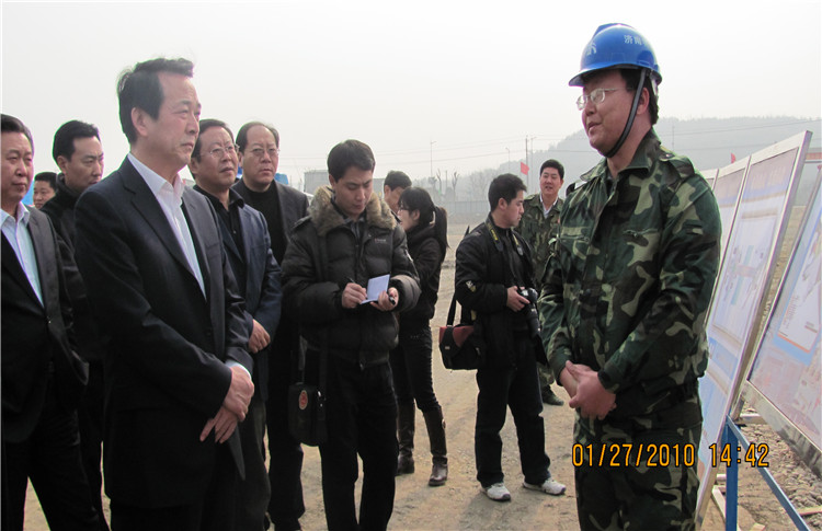 2009年6月,時任山東省委副書記、省長姜大明(右二)等省市領導一行到擂鼓鎮視察援建工作。